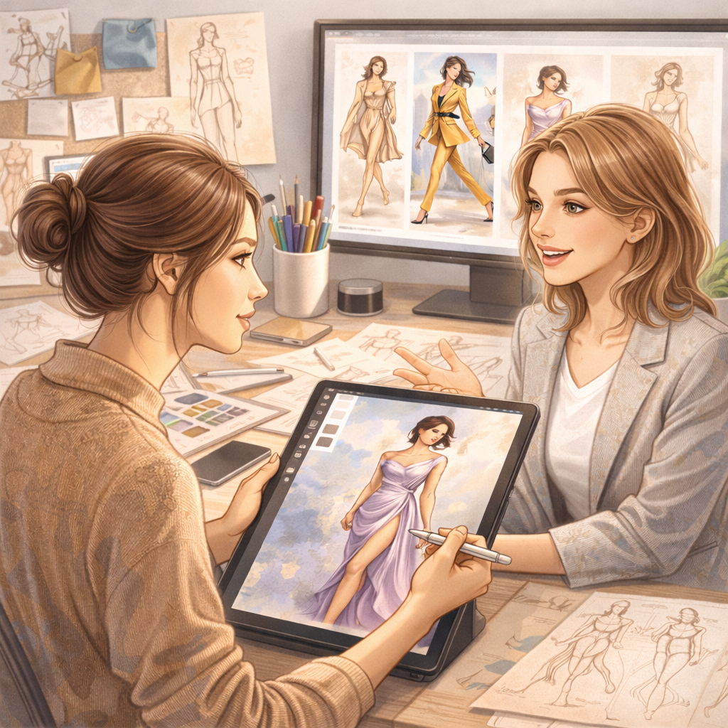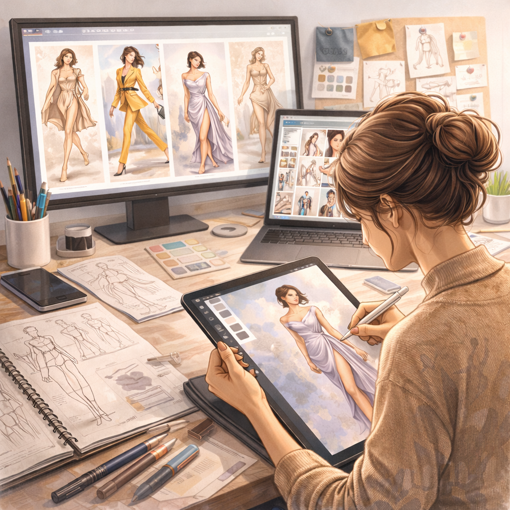 Traditional or digital artists who already draw but want to understand fashion proportions, fabric behavior, and industry-style illustration methods.